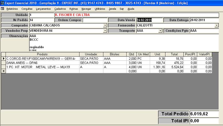 A Senha Representações é uma representante de madeiras, intermediando compradores e vendedores. Para que o Sistema atendesse plenamente as necessidades e expectativas do cliente, foi inclusive desenvolvida uma nova tela de vendas específica para o segmento.